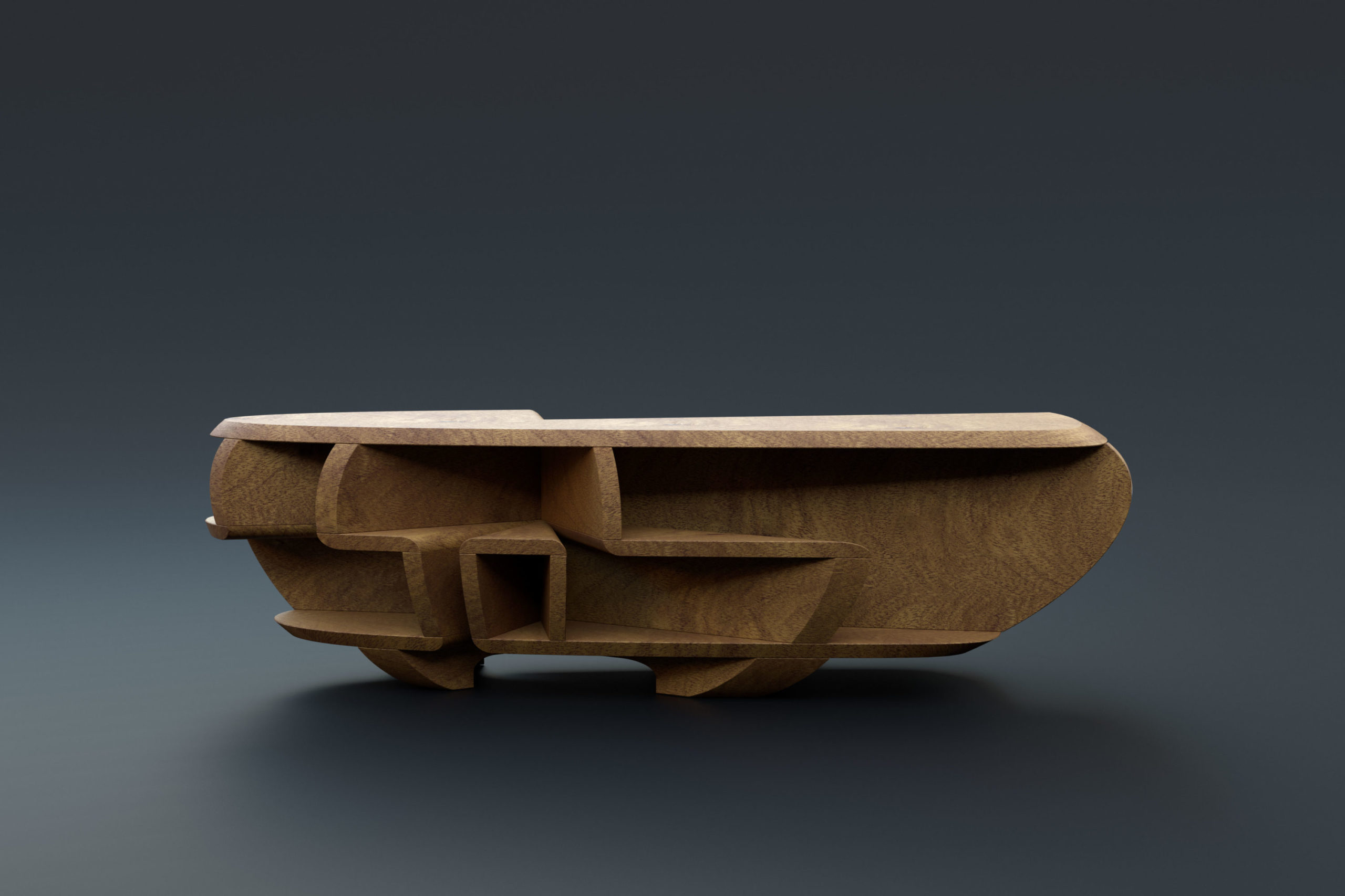 Solid Solid The wooden shelves’ lively composition makes their design a functional experience. The side table contains numerous compartments and storage possibilities, which can be played around their own axis. Thereby, Solid becomes both: storage place and stage for your cherished personal items. The true sophistication of this piece of furniture stems not only from its solid material and unique design, but rather from its craftsmanship, which unites the two. See also side tables from the same series: Coral and Reef.